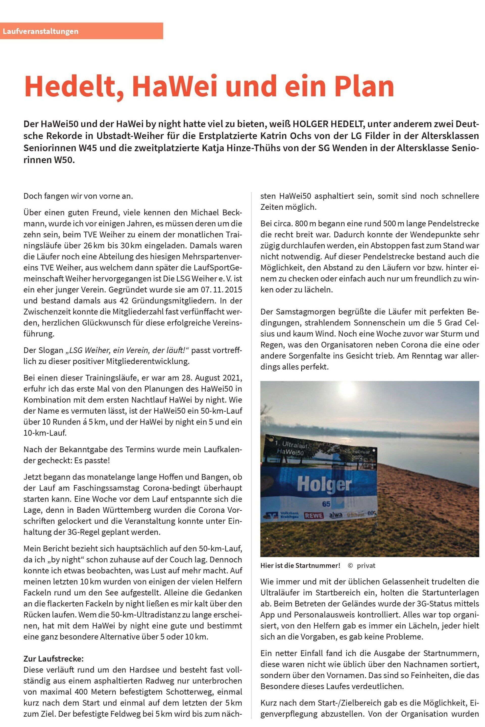 Auszug aus der Fachzeitschrift derDeutschen Ultramarathon-Vereinigung, kurz "DUV"